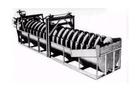 螺旋分級機(jī)是選礦的設(shè)備之一,螺旋分級機(jī)借助固體顆粒的比重不同,因而在液體中沉淀的速度不同的原理,進(jìn)行機(jī)械分級的一種設(shè)備。能把磨機(jī)內(nèi)磨出的料粉級于過濾,然后把粗料利用螺旋片旋片旋入磨機(jī)進(jìn)料口,把過濾出的細(xì)料從溢流管子排出。螺旋分級機(jī)簡稱分級機(jī)。 分級機(jī)主要有高堰式單螺旋和雙螺旋、沉沒式單螺旋和雙螺旋四種分級機(jī)。
