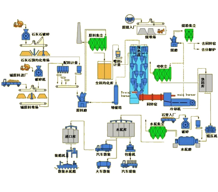 【方案優(yōu)勢】:新型干法水泥生產(chǎn)線介紹:新型干法水泥生產(chǎn)線是以生料預(yù)均化技術(shù)和回轉(zhuǎn)窯煅燒技術(shù)為基礎(chǔ),以懸浮預(yù)熱和窯外分解技術(shù)為核心的現(xiàn)代化水泥生產(chǎn)方法,其工藝的特點是生產(chǎn)能力大、自動化程度高、產(chǎn)品質(zhì)量高、能耗低、有害物排放量低、工業(yè)廢棄物利用量大。